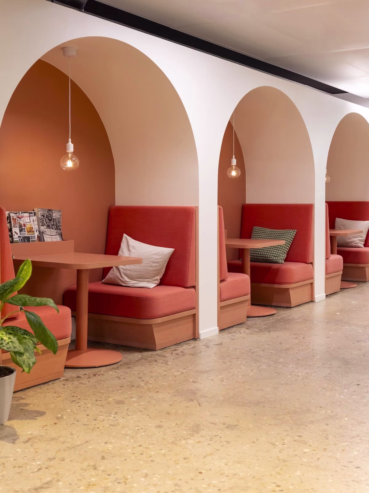 Avec ses 9 salles de réunion équipées, ses 14 phone boxes et ses 4 espaces communs répartis sur trois étages, l'espace offre un cadre de travail chaleureux et fonctionnel.