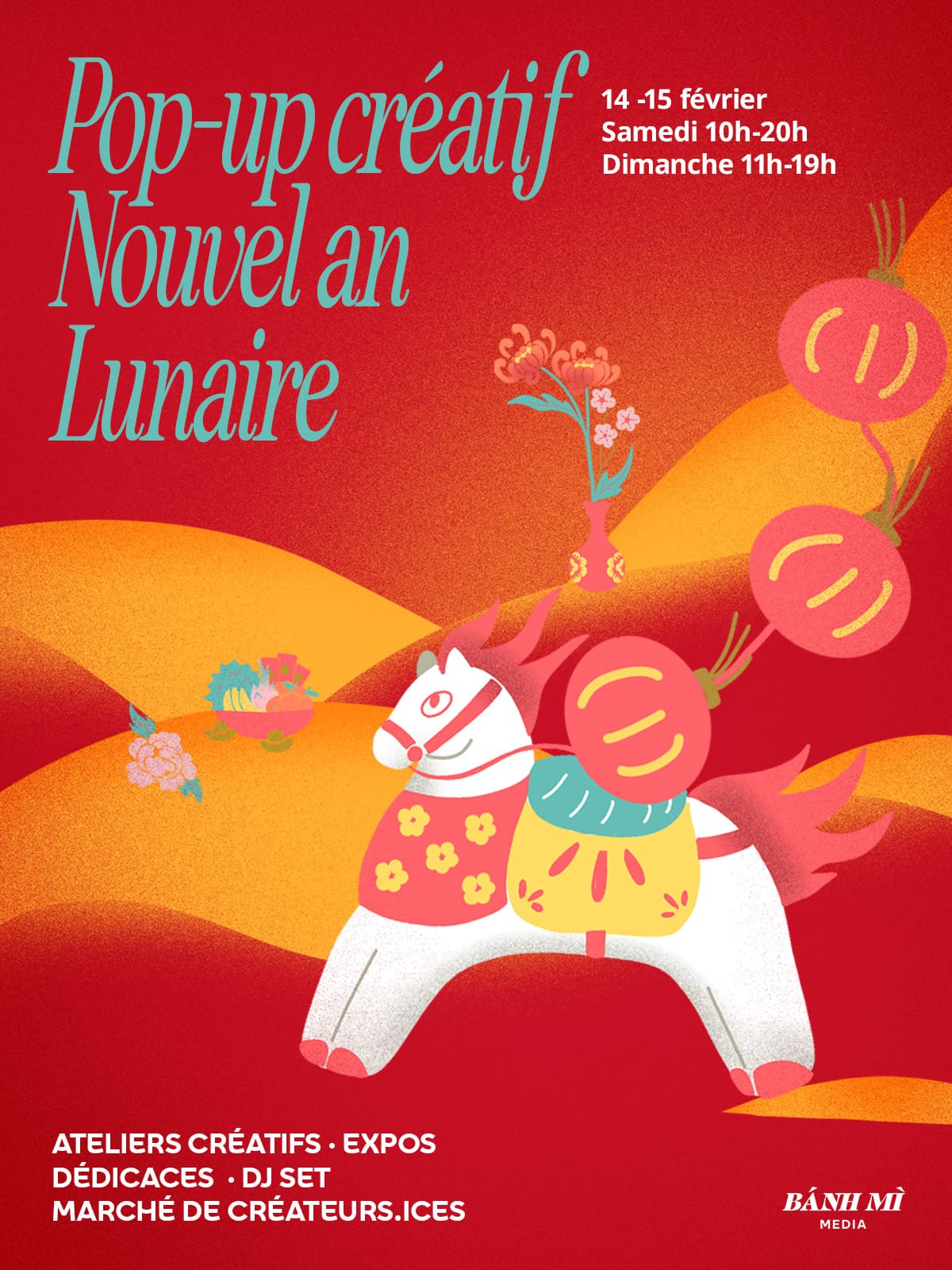 L’événement Italie Deux x Banh Mi – Pop-up Nouvel An lunaire se tiendra le 14 février de 10h à 20h et le 15 février de 11h à 19h ⏰, au centre commercial Italie Deux à Paris 13ᵉ 📍.
